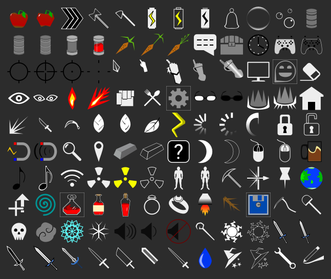 Random icons and textures I've been making for parts of my game. Thought they might be useful to someone at least as placeholders. The show_all_icons.tscn is a Godot scene that I use to screenshot the icons. Suggestions and feedback are welcome.